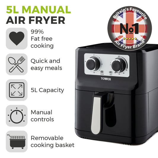 TOWER Vortx 5L Manual Single Basket Air Fryer Black