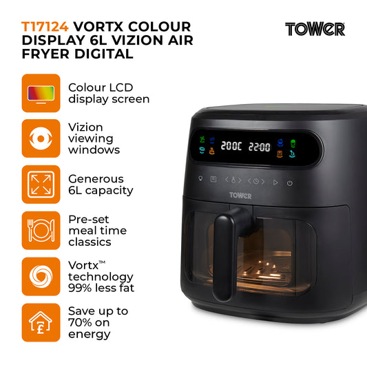 TOWER Vortx Vizion 6L Air Fryer with Colour Display Digital