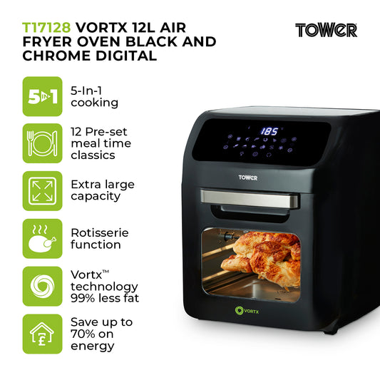 TOWER Vortx 12L Air Fryer Oven Black and Chrome Tower Website Exclusive