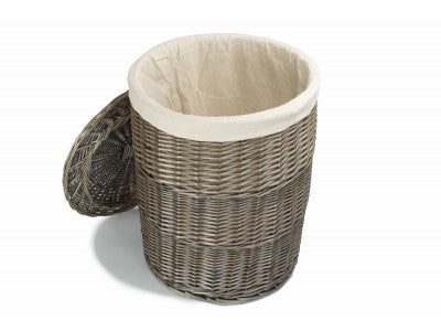 Large Antique Wash Round Laundry Basket With Grey Sage Lining