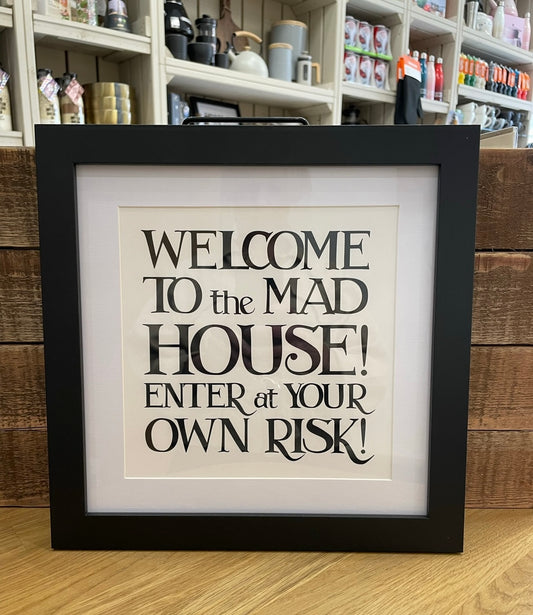 Framed Phrase Prints 25cm x 25cm - Welcome to the Mad House