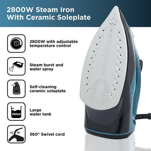 TOWER Ceraglide Cord/Cordless Iron 2800W Black and Teal