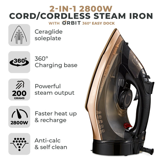 TOWER Ceraglide 2800W 360 Cord Cordless Steam Iron Black and Gold
