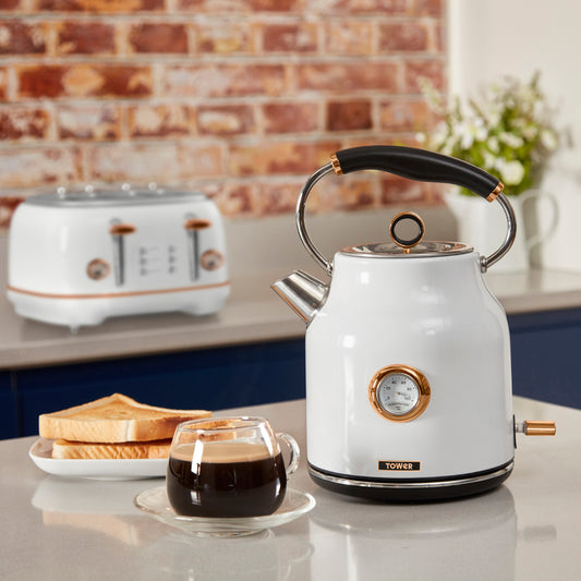 TOWER Bottega 3KW 1.7 Litre Stainless Steel Kettle White